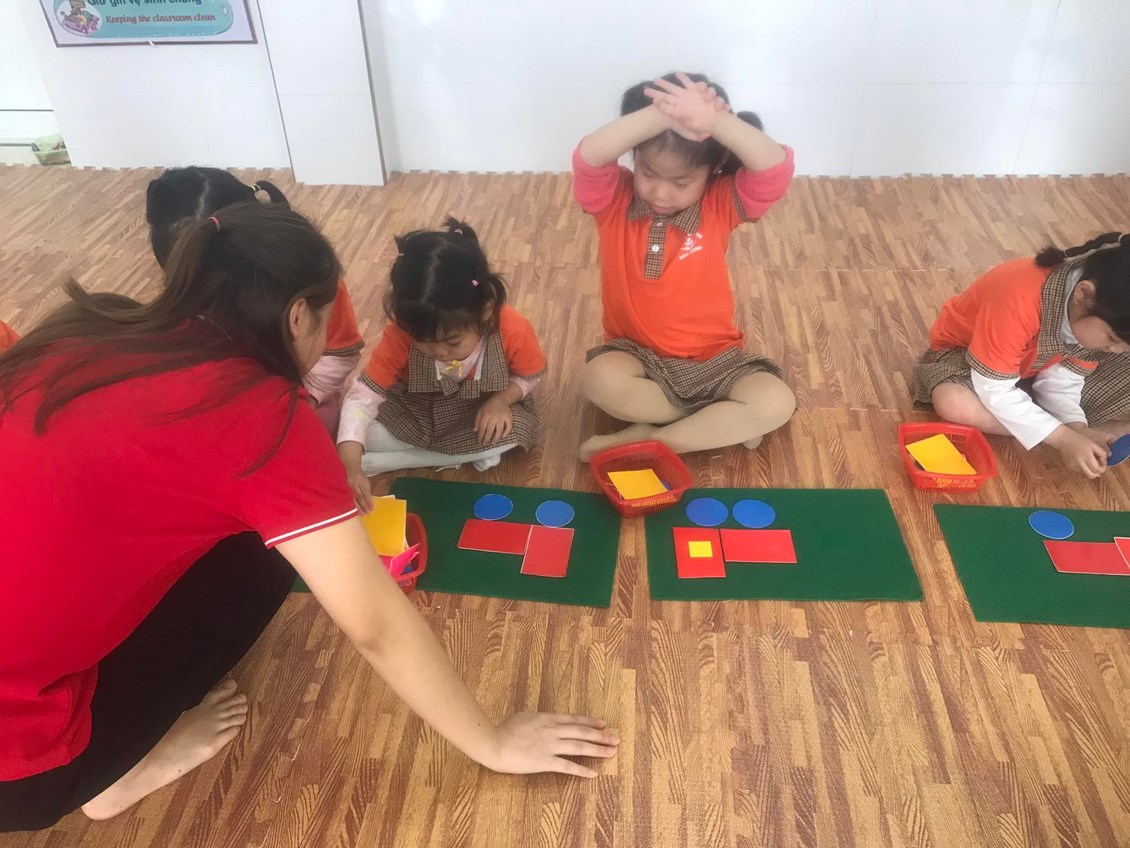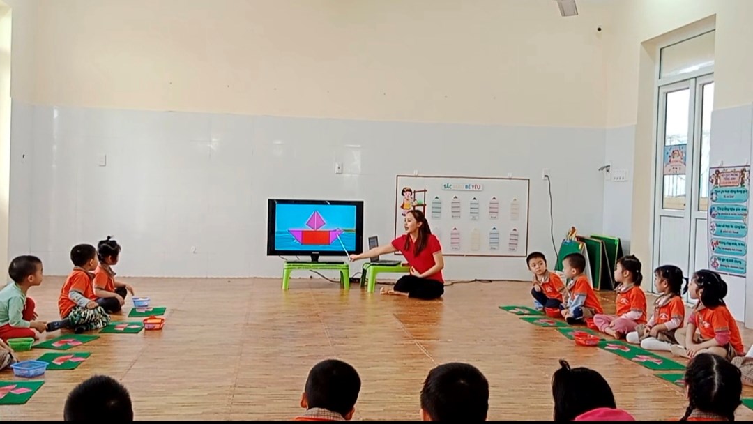 Với những hình tam giác, hình vuông, hình chữ nhật, hình tròn đã được chuẩn bị sẵn. Trẻ tự tay sắp xếp, chắp ghép các hình học đó theo ý thích và sự sáng tạo của mình. Những đôi mắt chăm chú, những bàn tay khéo léo, phối hợp với các giác quan một cách nhanh nhẹn trẻ đã tự tin, cố gắng, tưởng tượng và sáng tạo đã tạo ra được các hình mới khác nhau vô cùng phong phú và hấp dẫn, khoa học và sáng tạo. Thông qua hoạt động lĩnh vực phát triển nhận thức cho thấy kiến thức và kỹ năng, sáng tạo của trẻ được nâng cao một cách có hiệu quả.