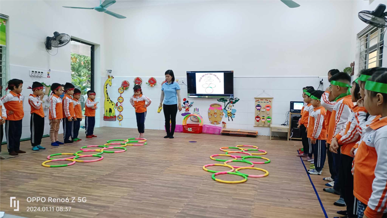 Trẻ Mầm non luôn luôn hiếu động và tràn trề năng lượng, các bài vận động sẽ giúp trẻ đốt cháy năng lượng và giúp cơ thể hấp thụ chất dinh dưỡng rất tốt. Bên cạnh đó, giúp trẻ ngủ ngon và sâu hơn, giữ được lượng đường huyết và cholesterol ổn định để luôn khỏe mạnh và khám phá cuộc sống quanh mình. Các bài vận động thường được giáo viên xây dựng phù hợp với từng độ tuổi của trẻ và được phân nhóm vận động như: vân động tinh, vận động thô, nhóm trườn, trèo, bật, ném… nhằm thu hút trẻ. Các bài tập vận động vừa sức giúp cơ thể trẻ thoải mái, kích thích hoạt động của các hệ cơ quan bên trong như hệ tuần hoàn, hệ thần kinh, hệ hô hấp, hệ tiêu hóa...