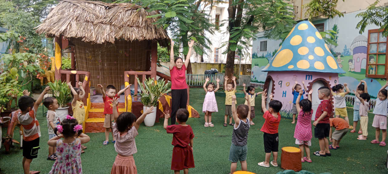 Một số hình ảnh đã được ghi lại trong giờ tập thể dục sáng của các bé mẫu giáo bé C2 trường mầm non Đặng Cương: