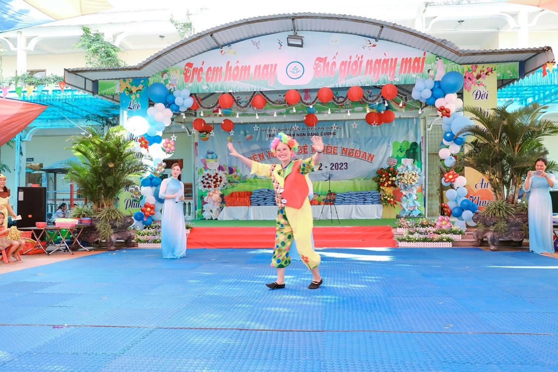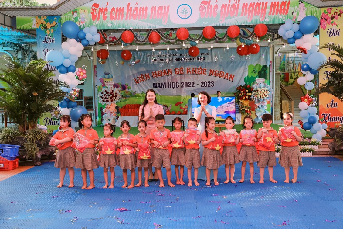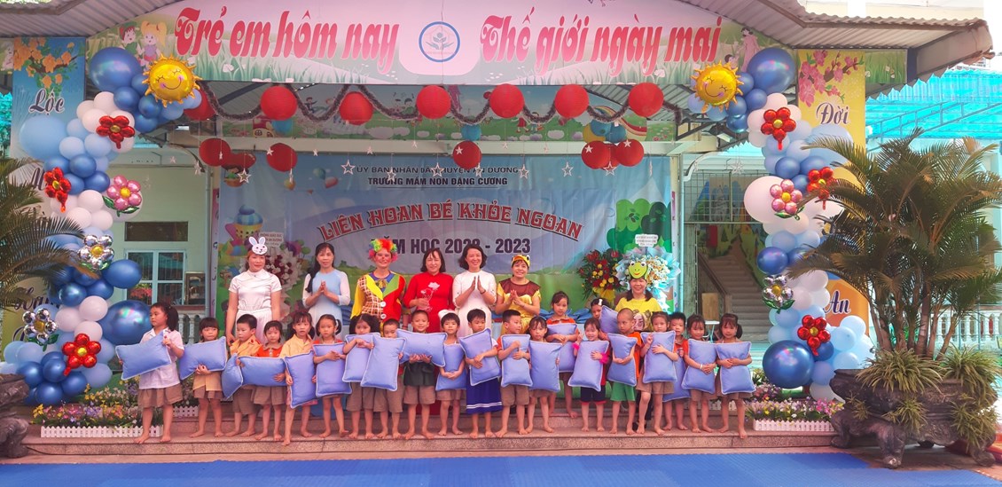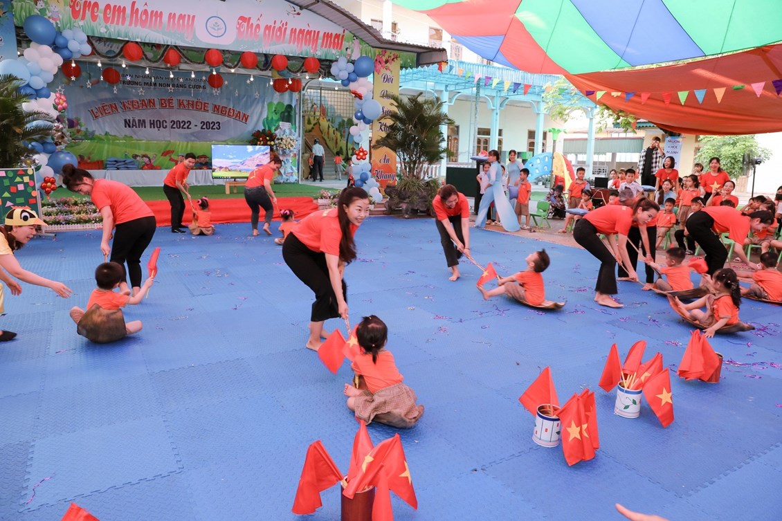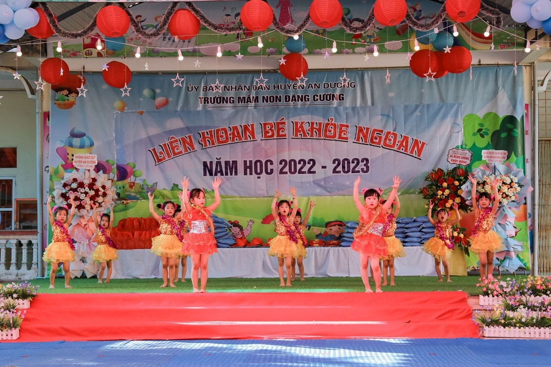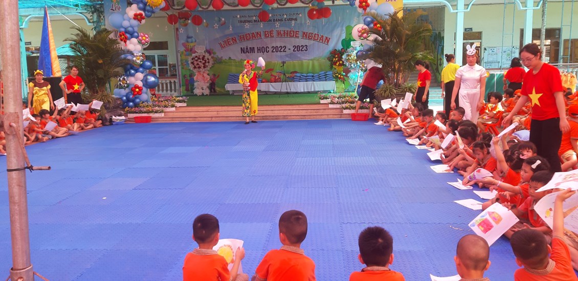 Thực hiện kế hoạch nhiệm vụ năm học 2022-2023, ngày 17/5, tại trường mầm non Đặng Cương long trọng tổ chức “ Chương trình liên hoan Bé khỏe- ngoan” lồng ghép chủ đề “ Bé với an toàn giao thông”. Về dự, chỉ đạo, cổ vũ, động viên có đồng chí Nguyễn Thị Huyền, Phó trưởng phòng GD-ĐT huyện.