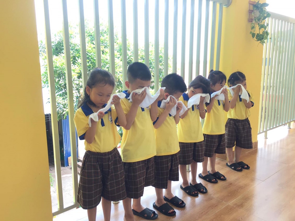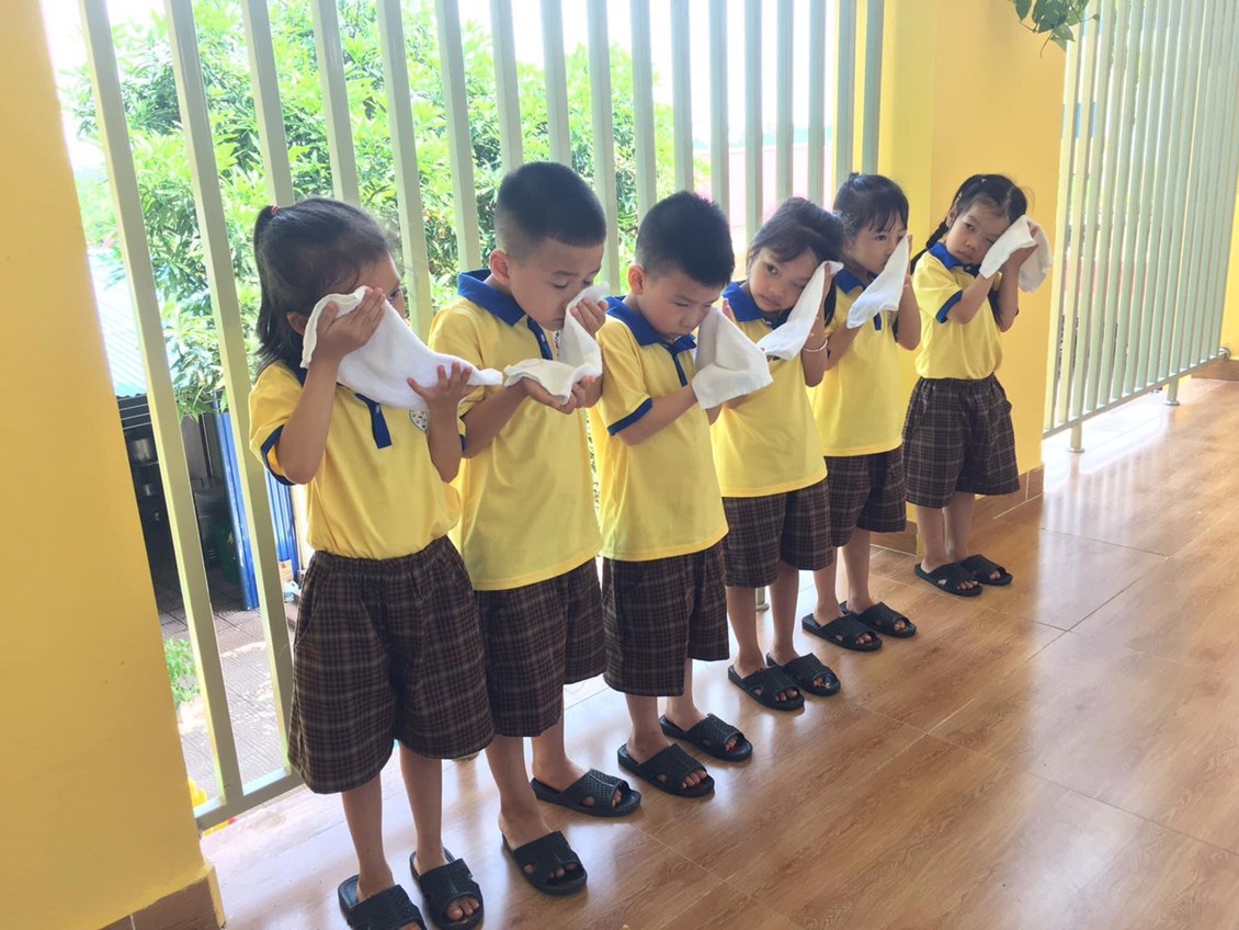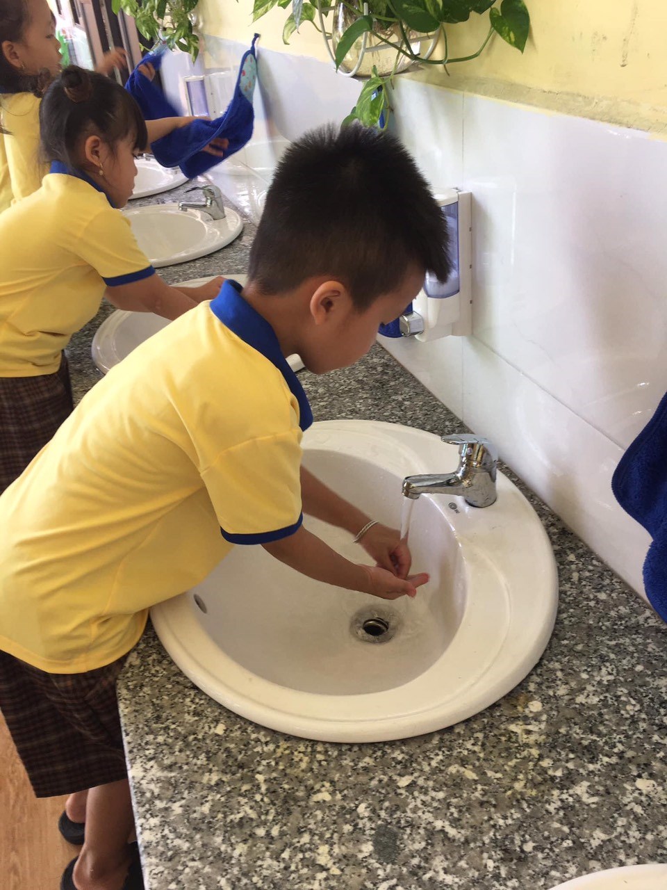 Cùng các bạn lớp 5A4 rửa tay, rửa mặt nhé!