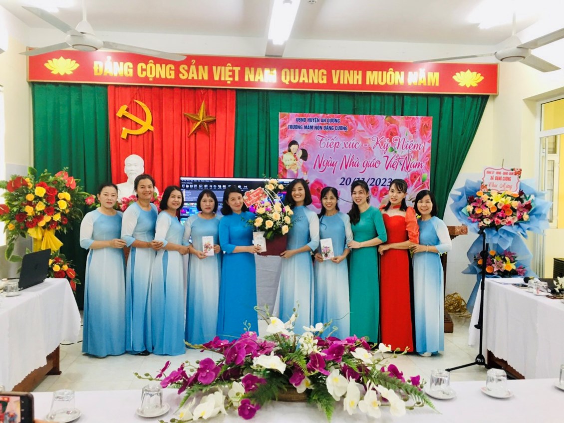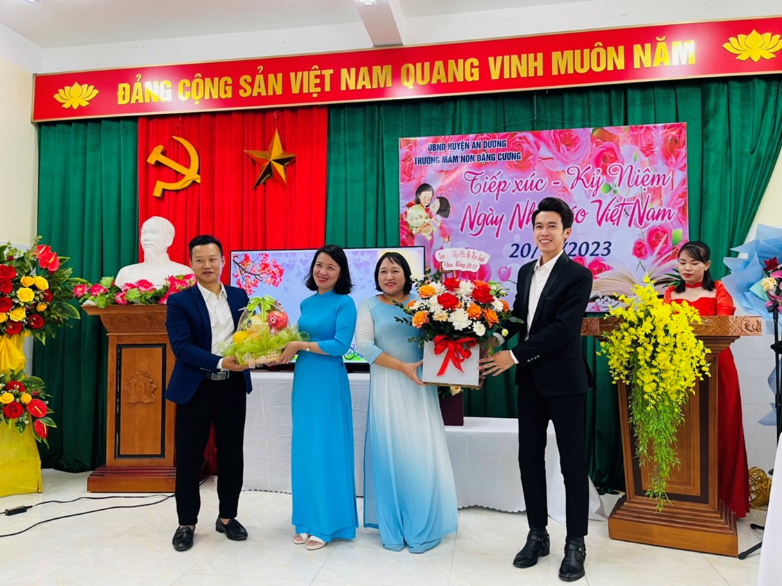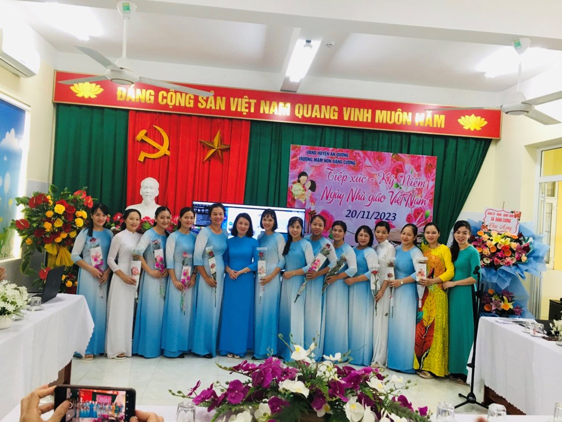 Trong không khí hân hoan chào mừng 41 năm ngày Nhà giáo Việt Nam. Ngày 17/11, Trường mầm non Đặng Cương long trọng tổ chức Hội nghị tiếp xúc kỷ niệm và gặp mặt cán bộ, giáo viên, nhân viên. Cùng dự Hội nghị có sự tham dự của các đại biểu đại diện lãnh đạo xã Đặng Cương, các bậc phụ huynh đại diện cha mẹ học sinh của các lớp trong nhà trường. Tại đây, đại biểu đã được cùng nhau ôn lại truyền thống tôn sư, trọng đạo tốt đẹp của dân tộc. Đây là một hoạt động tri ân sâu sắc những người lái đò thầm lặng đưa các thế hệ học trò đến với những bến bờ tri thức.