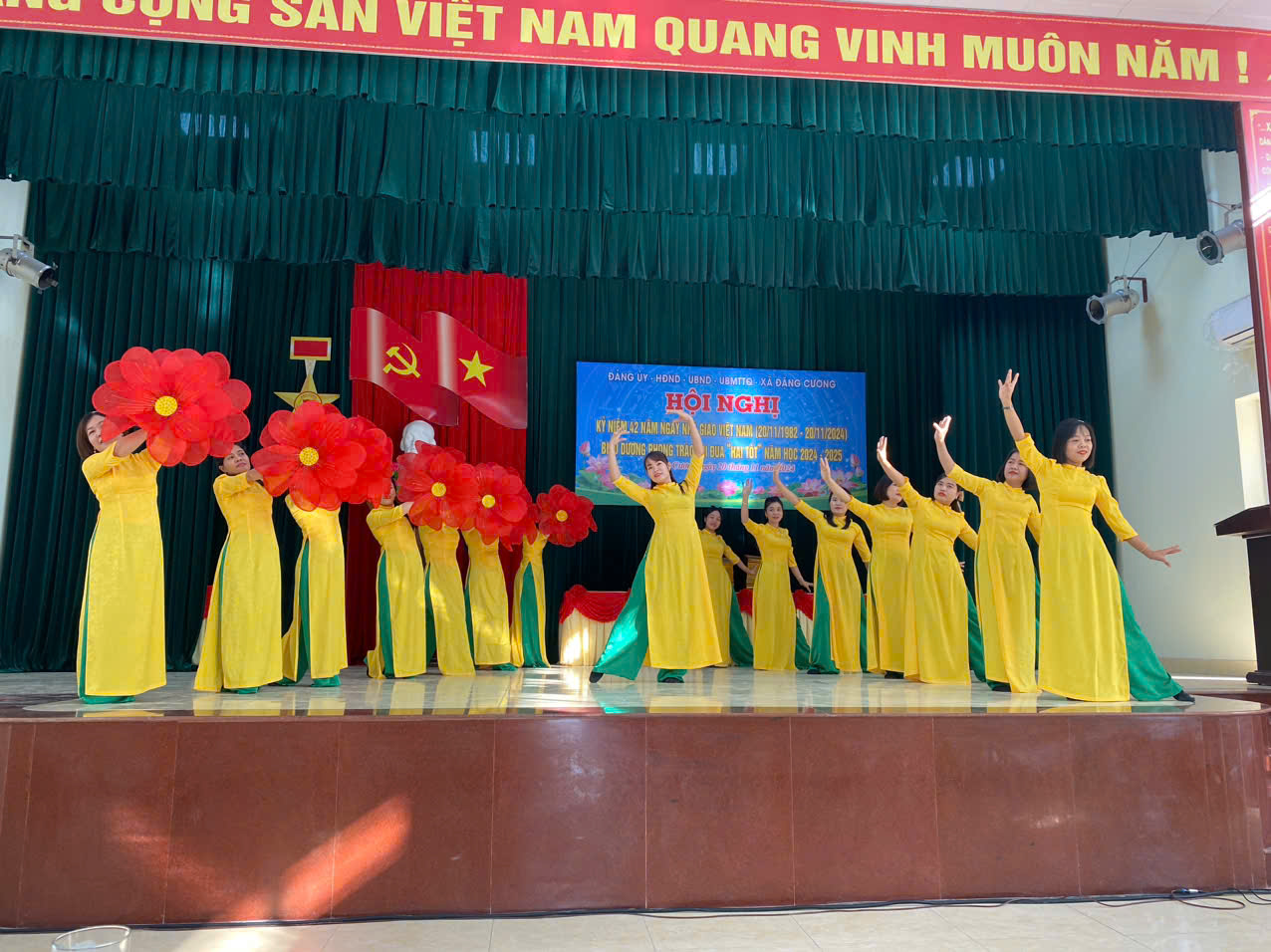 Hoà cùng với khí thế tưng bừng phấn khởi của cả nước, nhân dịp kỷ niệm 42 năm ngày Nhà giáo Việt Nam. Được sự quan tâm của Đảng bộ, chính quyền xã Đặng Cương sáng ngày 20/11 tại nhà văn hoá xã đã long trọng diễn ra Hội nghị biểu dương phong trào thi đua “Hai tốt”năm học 2023-2024.